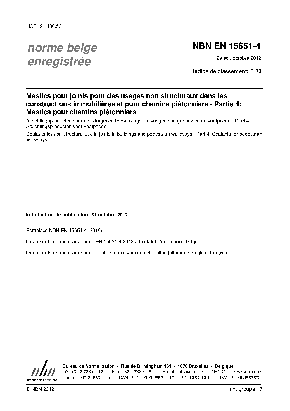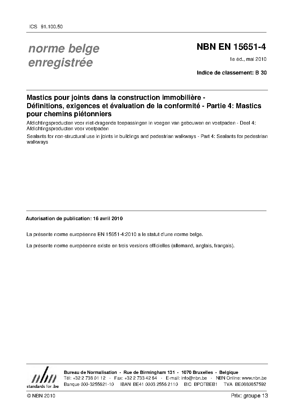 | Publisher | Bureau de Normalisation Belge (NBN) |