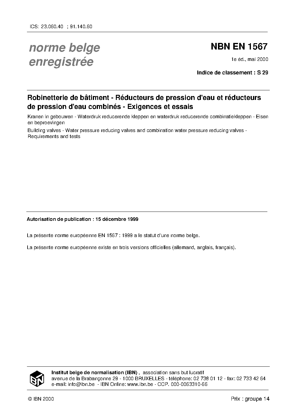 NBN EN 1567:2000