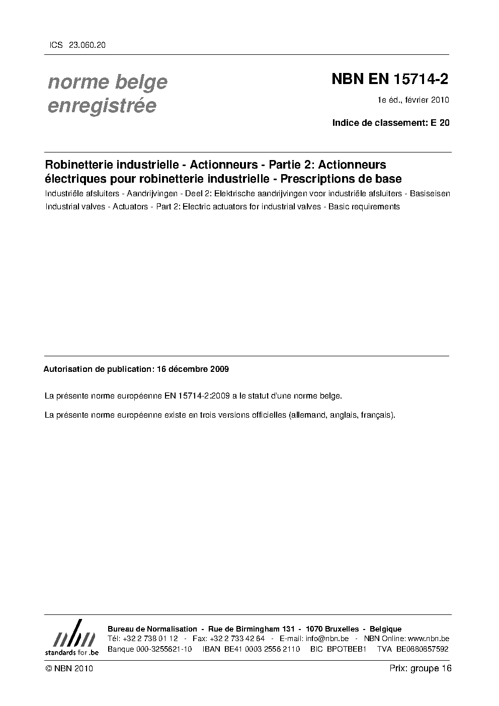 | Publisher | Bureau de Normalisation Belge (NBN) |