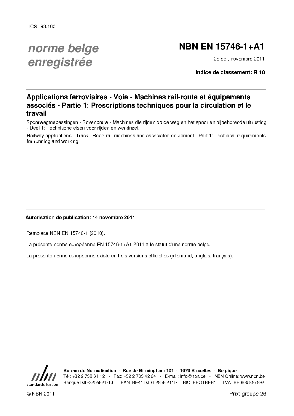 NBN EN 15746-1+A1:2011