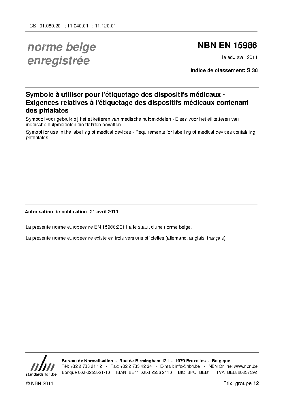 | Publisher | Bureau de Normalisation Belge (NBN) |
