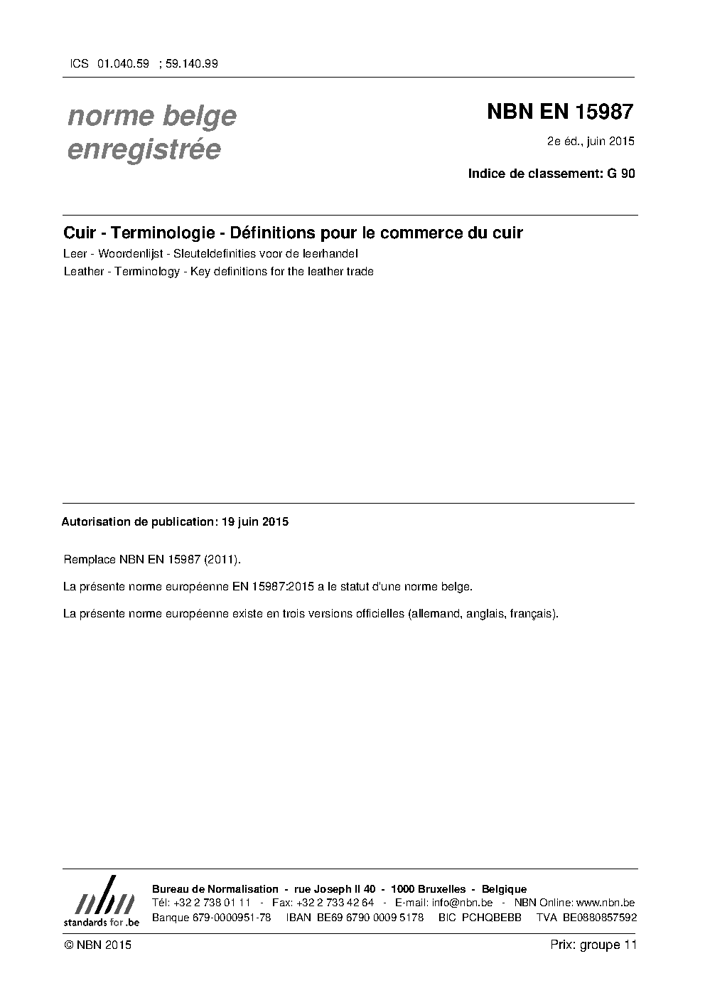 | Publisher | Bureau de Normalisation Belge (NBN) |