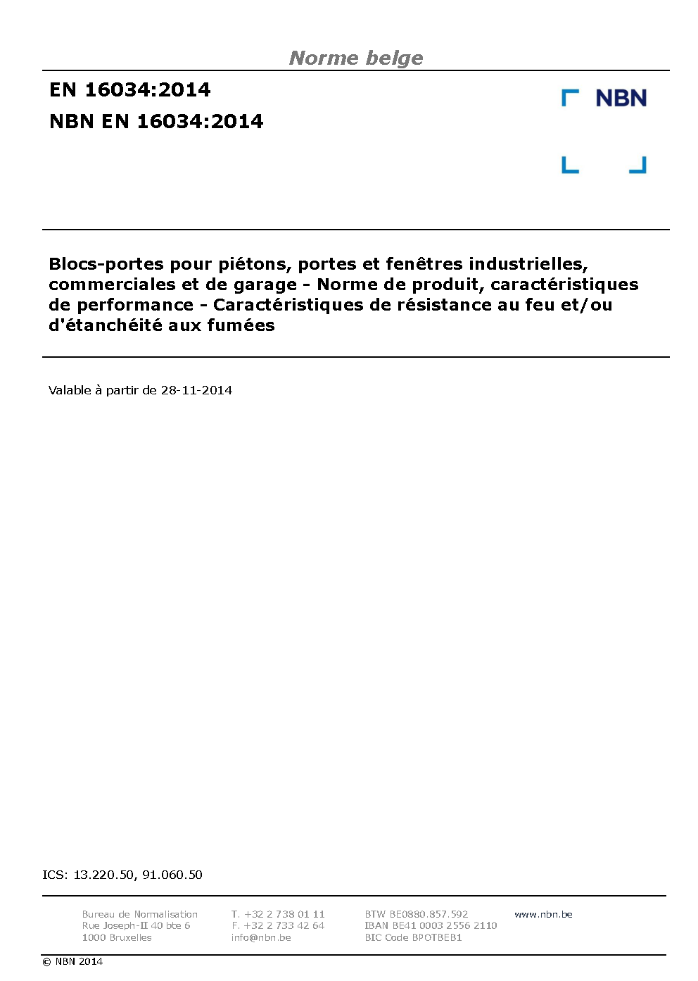 NBN EN 16034:2014