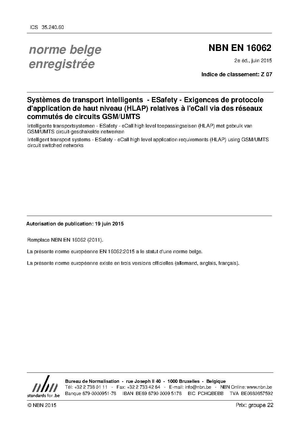 | Publisher | Bureau de Normalisation Belge (NBN) |