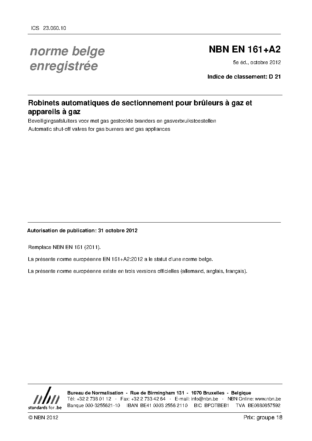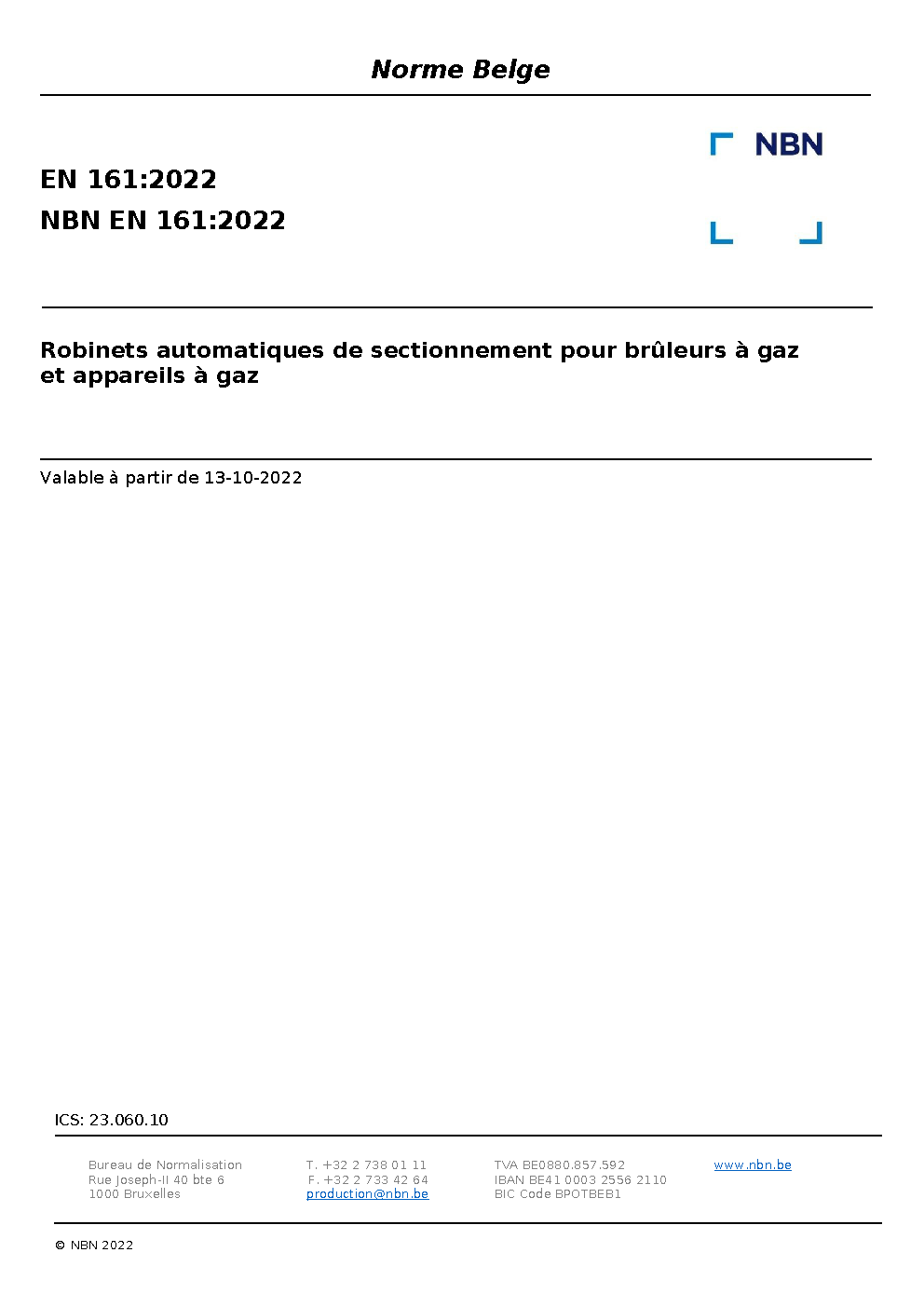 | Publisher | Bureau de Normalisation Belge (NBN) |