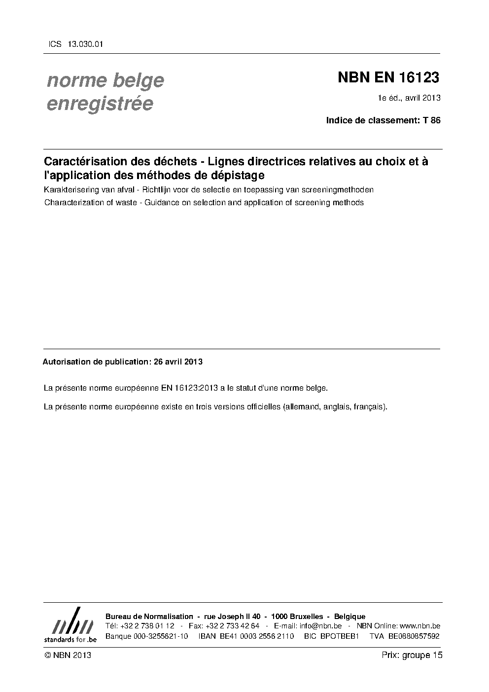 | Publisher | Bureau de Normalisation Belge (NBN) |