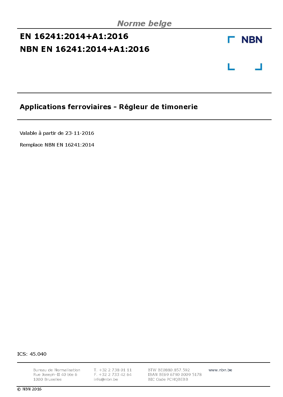 | Publisher | Bureau de Normalisation Belge (NBN) |