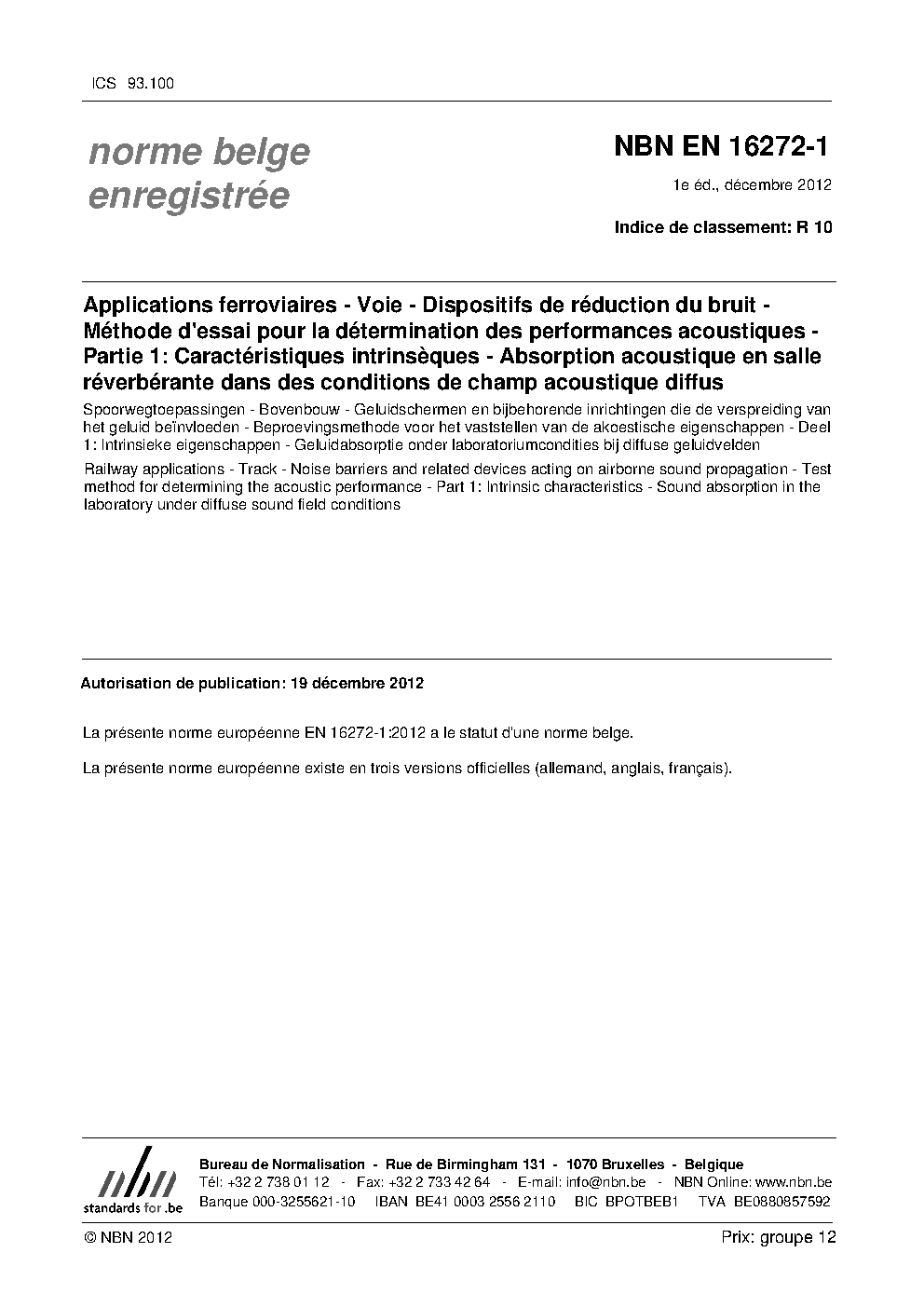 | Publisher | Bureau de Normalisation Belge (NBN) |