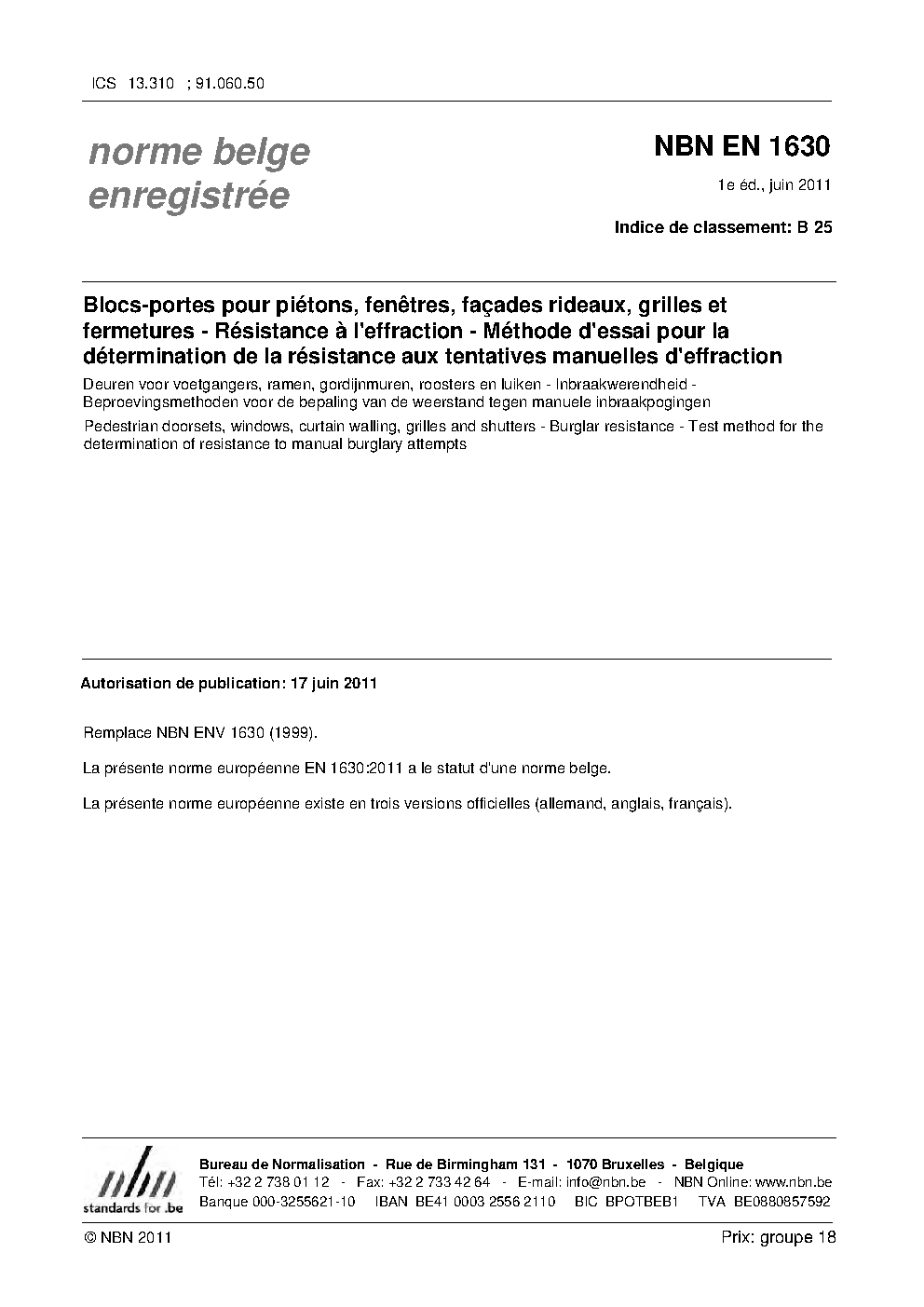 | Publisher | Bureau de Normalisation Belge (NBN) |