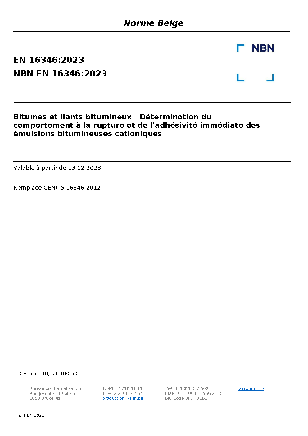 | Publisher | Bureau de Normalisation Belge (NBN) |