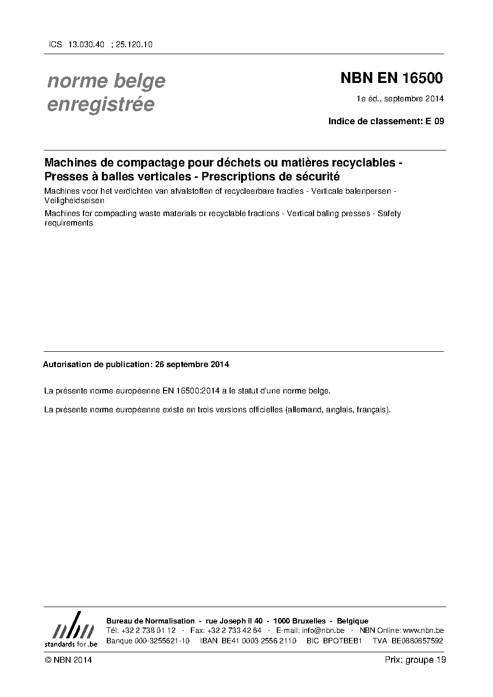 | Publisher | Bureau de Normalisation Belge (NBN) |