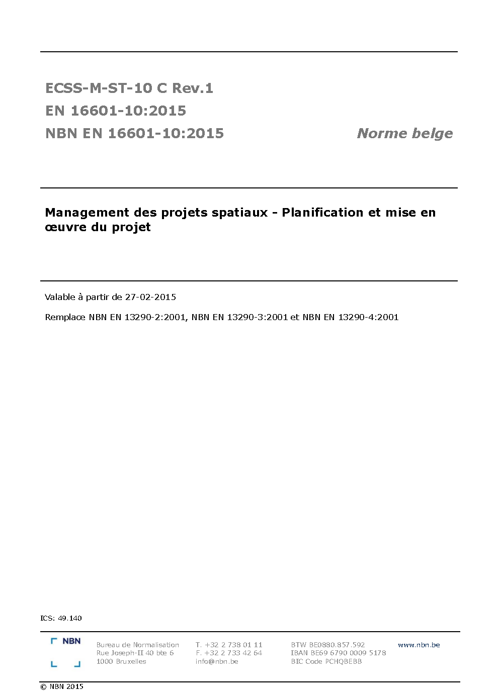 | Publisher | Bureau de Normalisation Belge (NBN) |