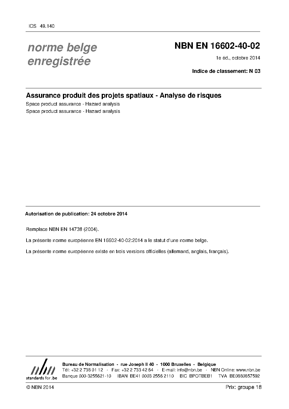 | Publisher | Bureau de Normalisation Belge (NBN) |