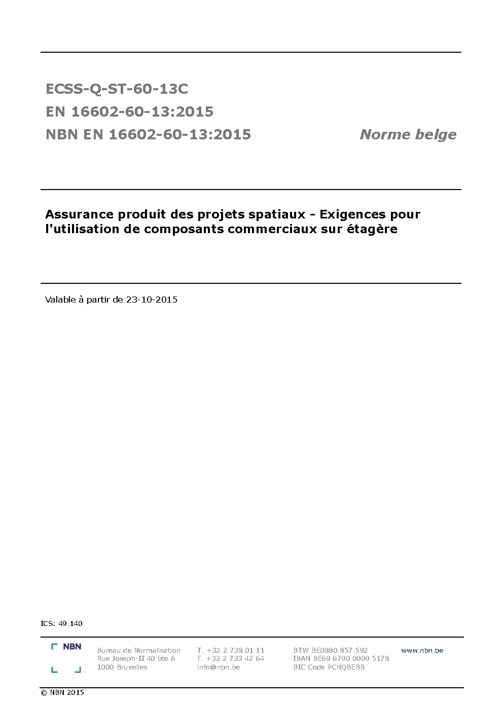 | Publisher | Bureau de Normalisation Belge (NBN) |