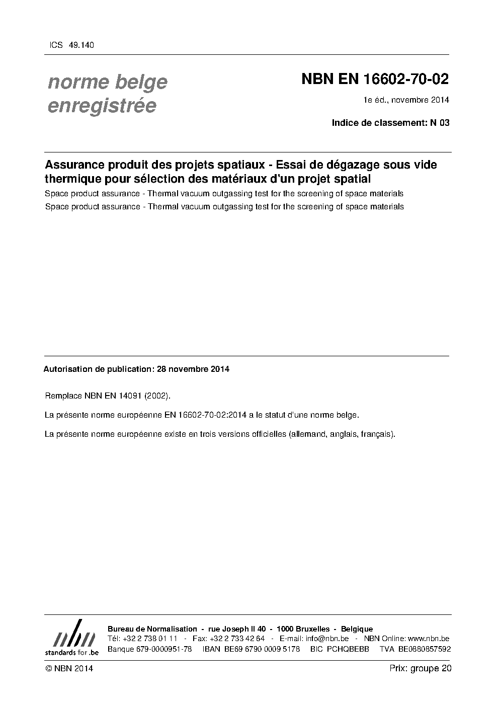 | Publisher | Bureau de Normalisation Belge (NBN) |