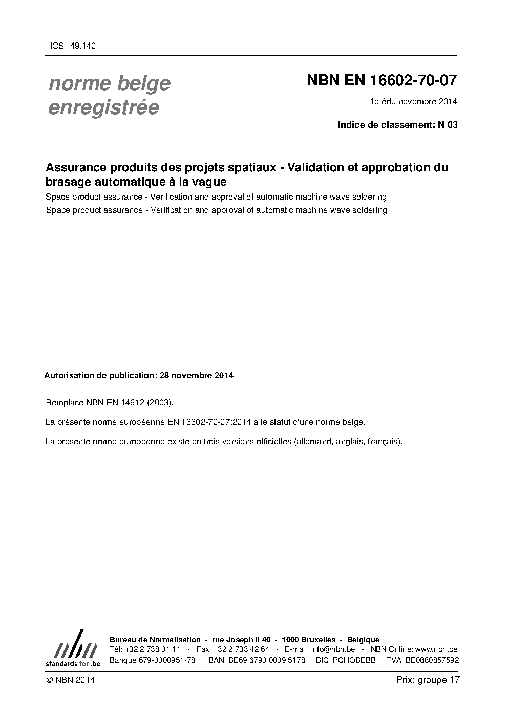| Publisher | Bureau de Normalisation Belge (NBN) |