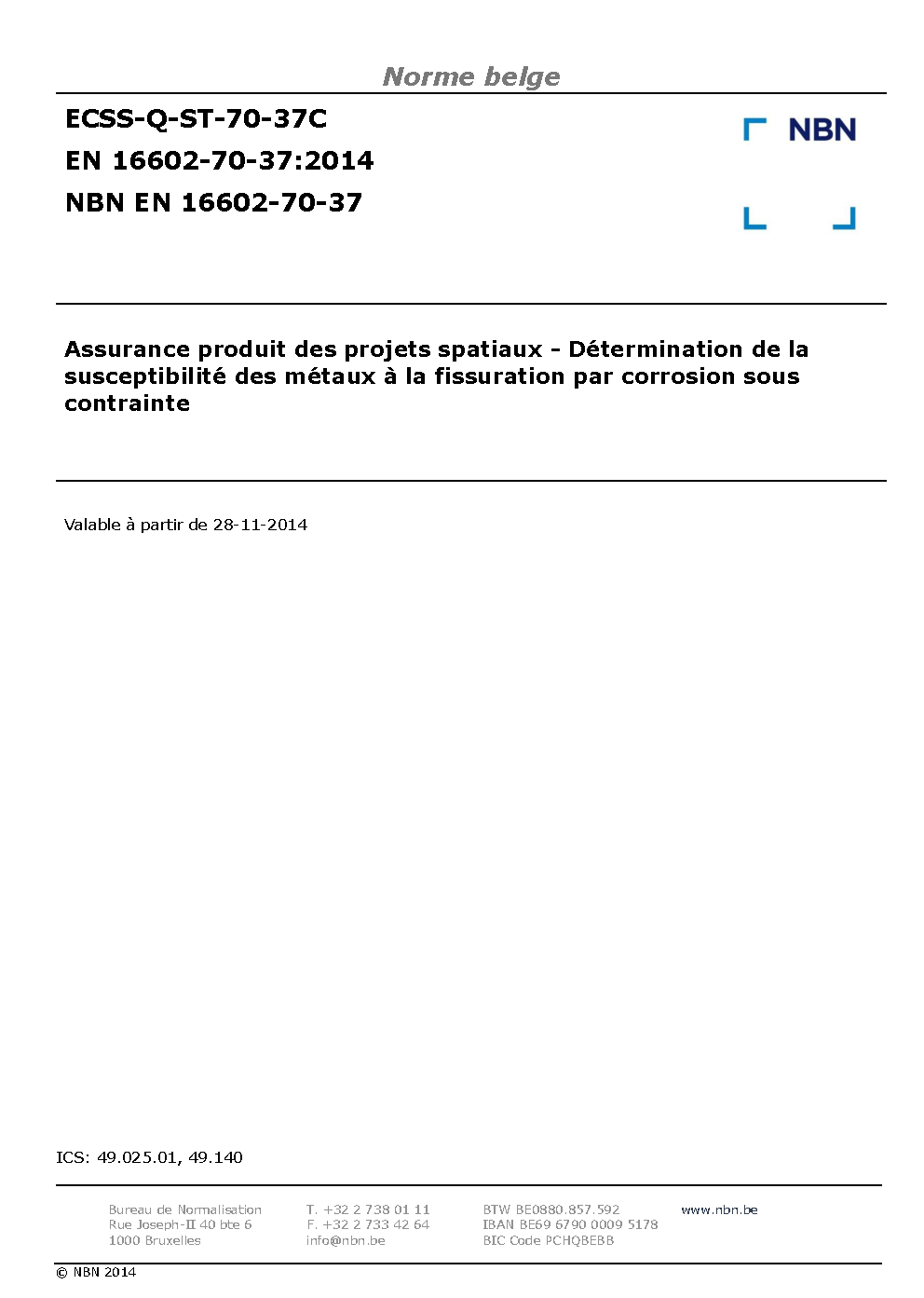 NBN EN 16602-70-37:2014