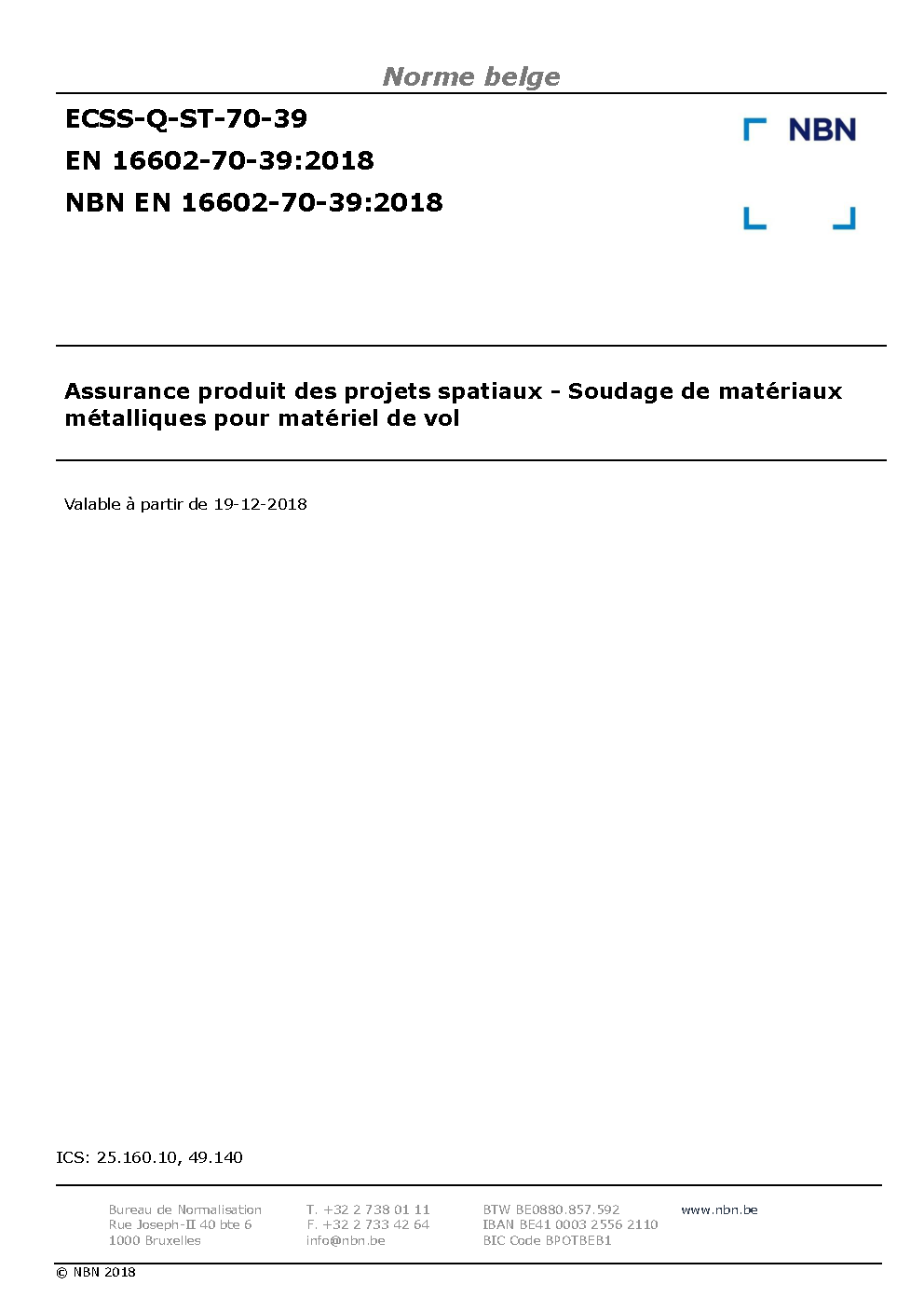NBN EN 16602-70-39:2018