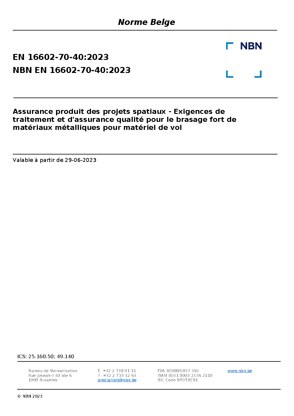 • au brasage à des fins d’assemblage électronique (ECSS-Q-ST-70-61) ;