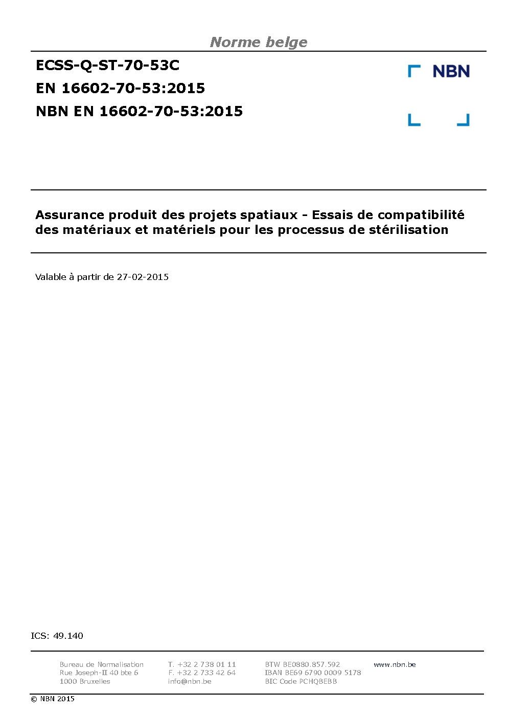 NBN EN 16602-70-53:2015