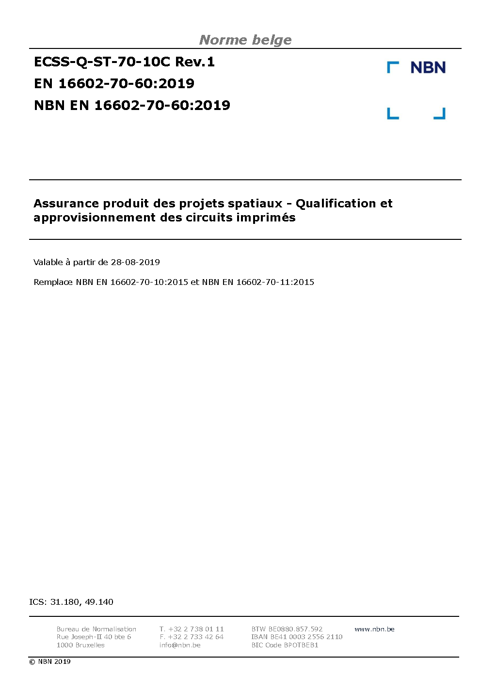 | Publisher | Bureau de Normalisation Belge (NBN) |