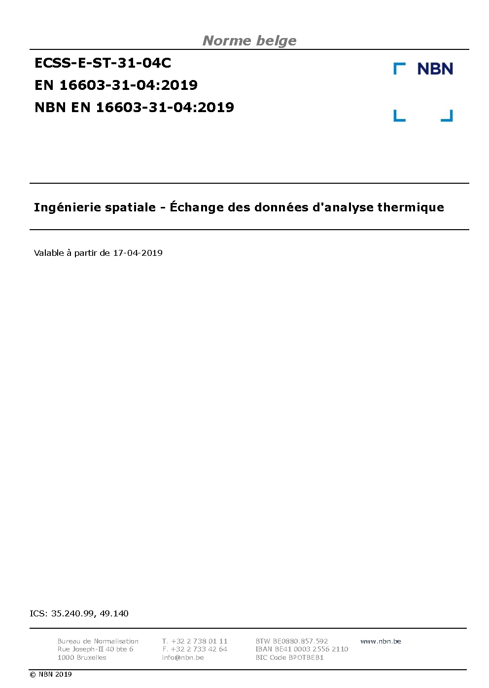NBN EN 16603-31-04:2019