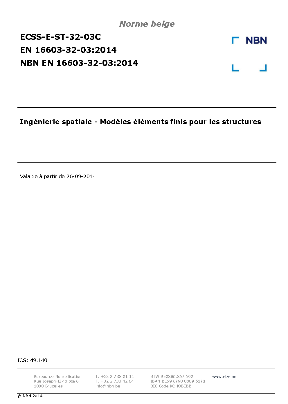 NBN EN 16603-32-03:2014
