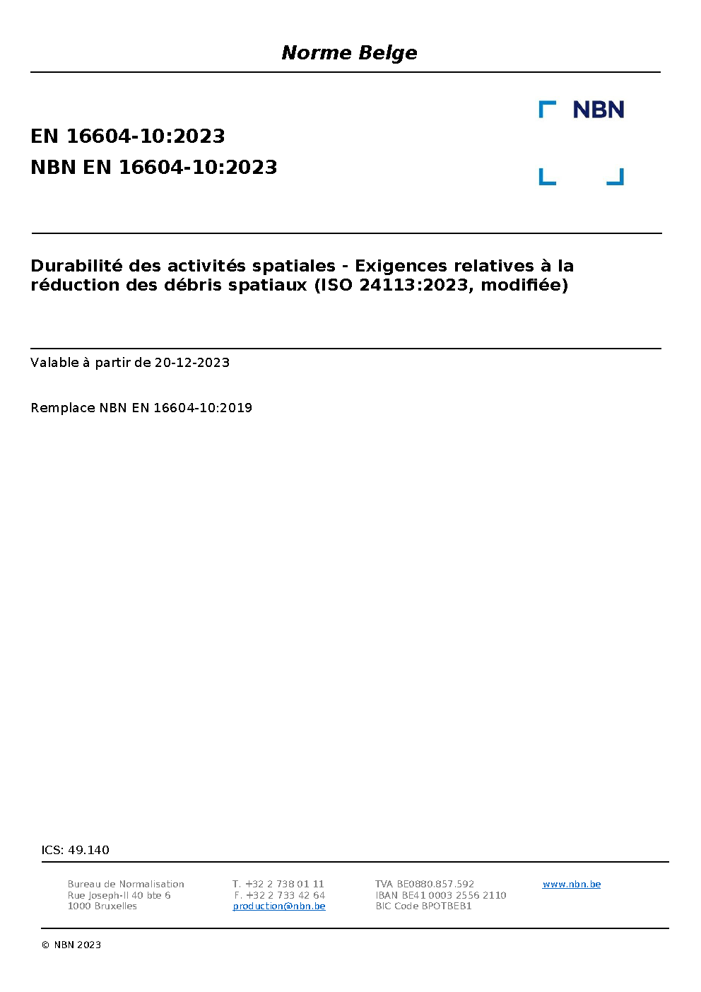 | Publisher | Bureau de Normalisation Belge (NBN) |