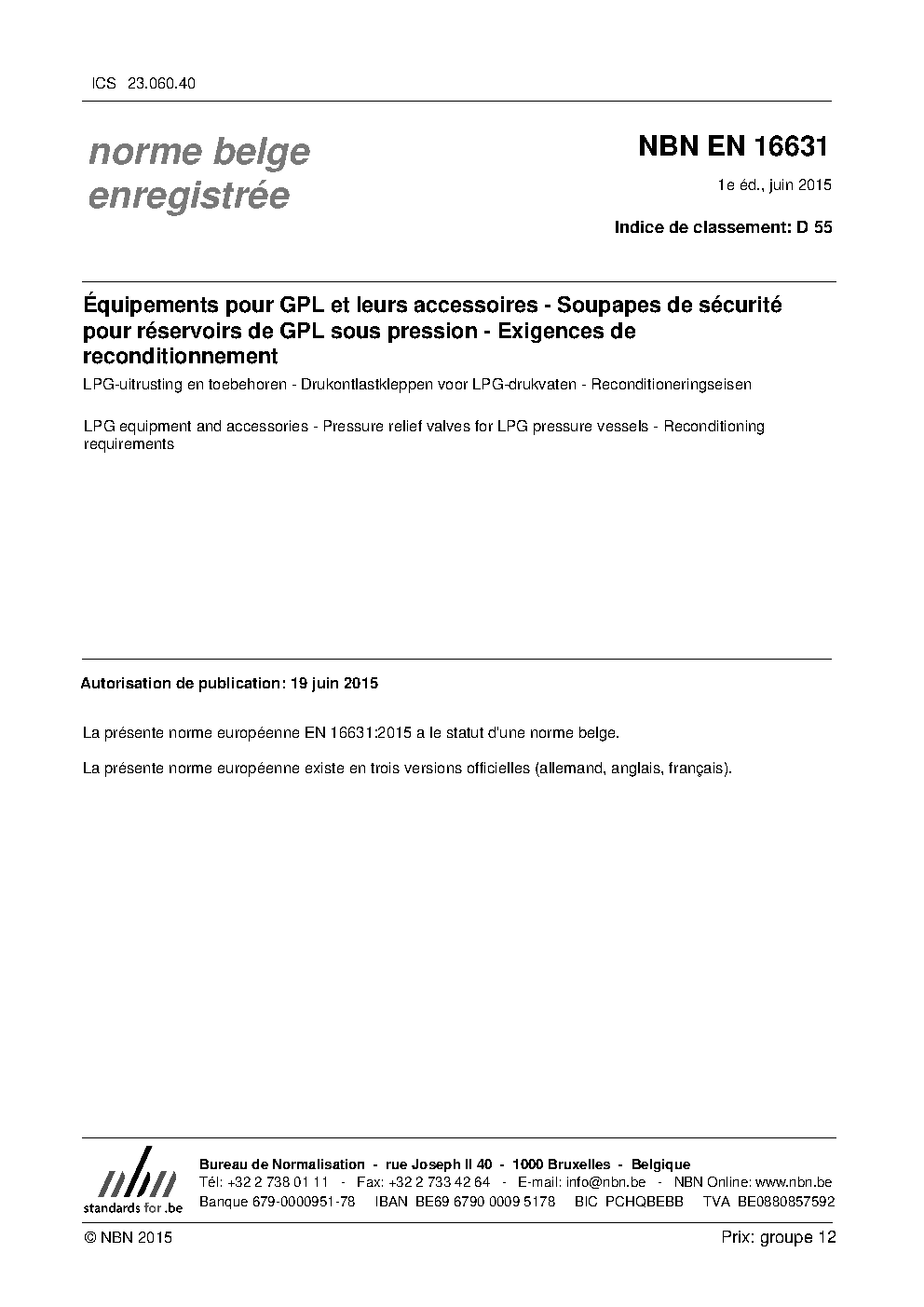 | Publisher | Bureau de Normalisation Belge (NBN) |