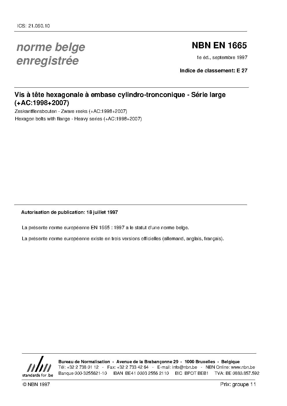 | Publisher | Bureau de Normalisation Belge (NBN) |