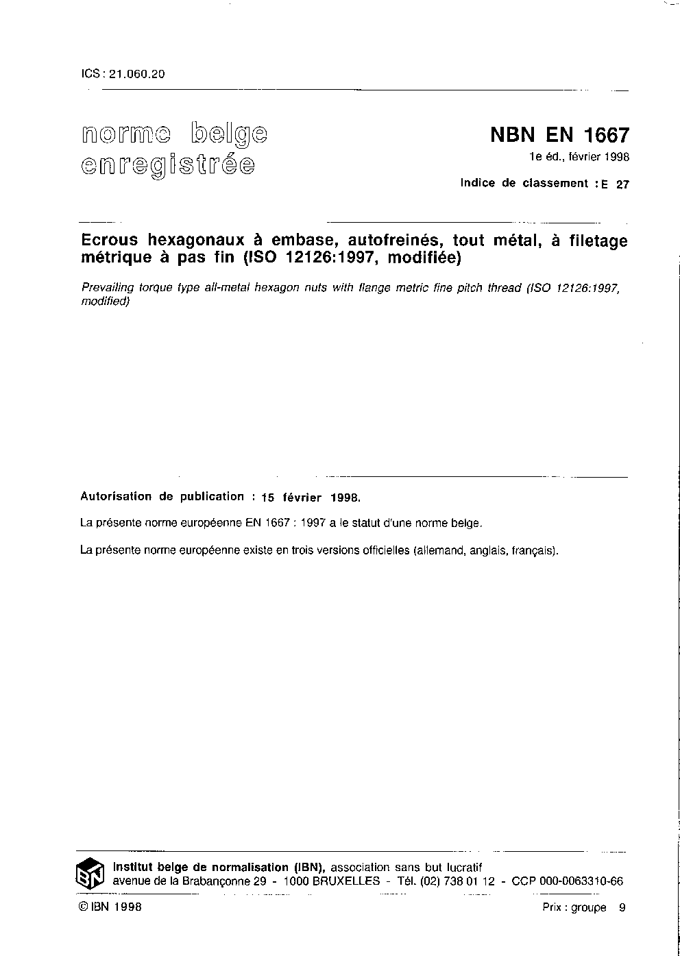 | Publisher | Bureau de Normalisation Belge (NBN) |