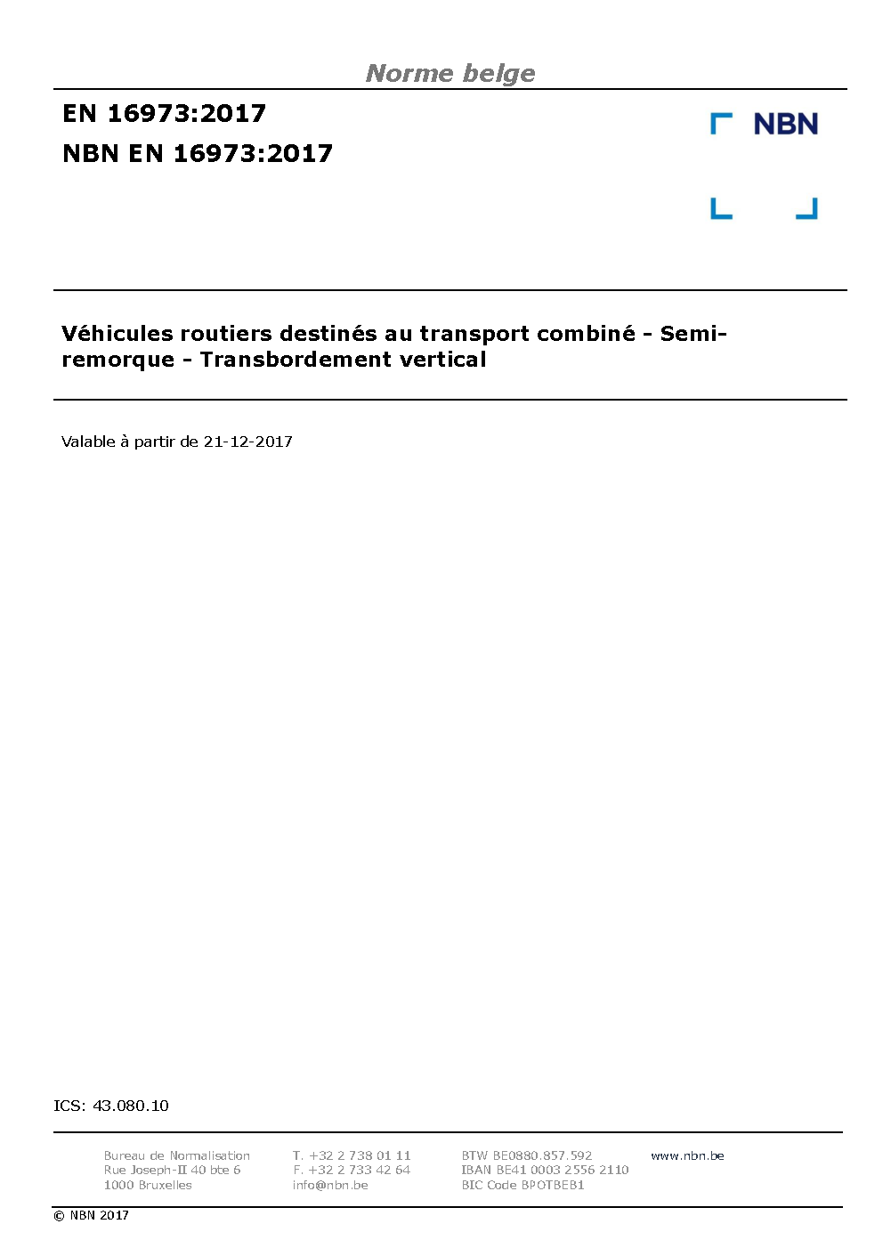 | Publisher | Bureau de Normalisation Belge (NBN) |