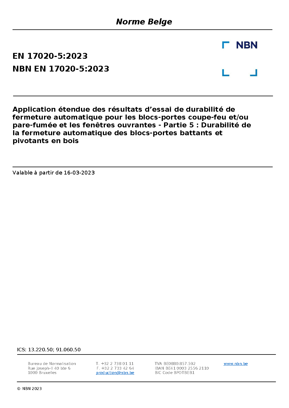 Extended application of test results on durability of self-closing for fire resistance and/or smoke control doorsets and openable windows - Part 5: Durability of self-closing of hinged and pivoted timber doorsets