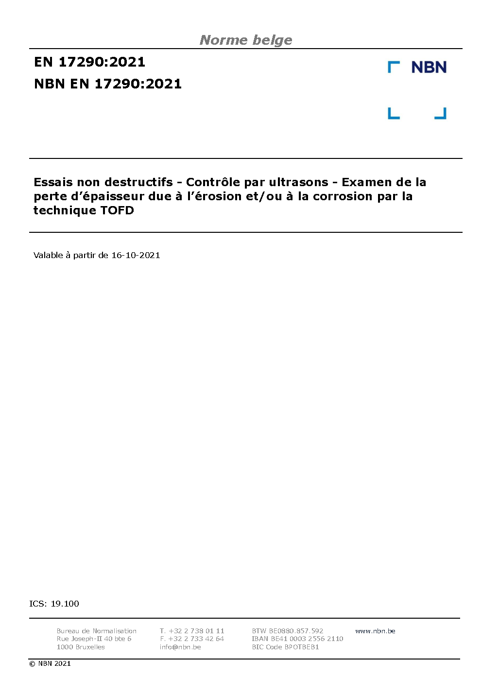 | Publisher | Bureau de Normalisation Belge (NBN) |