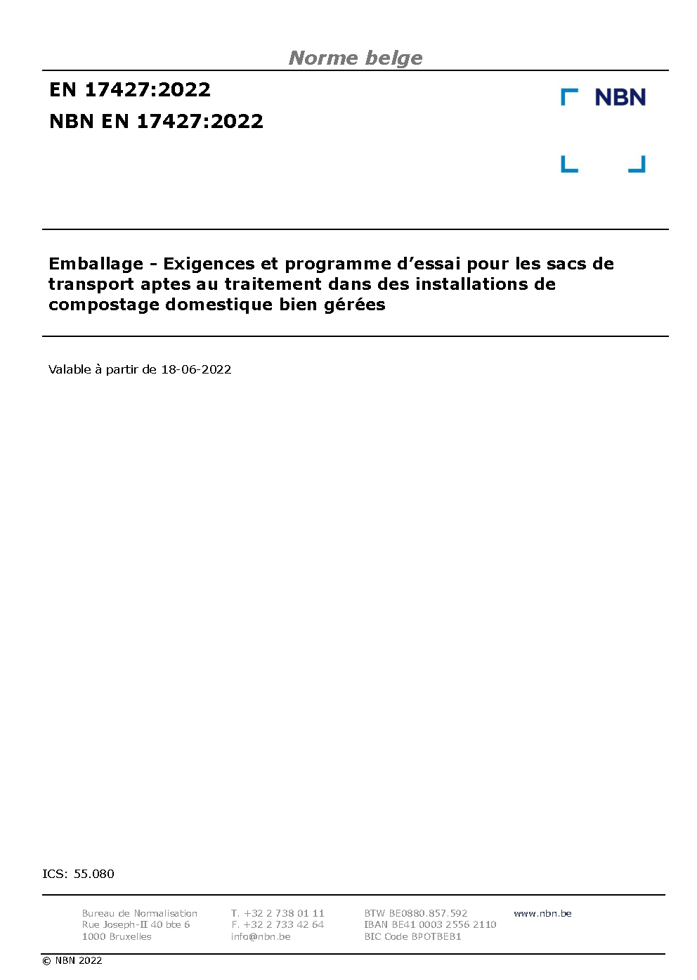 | Publisher | Bureau de Normalisation Belge (NBN) |