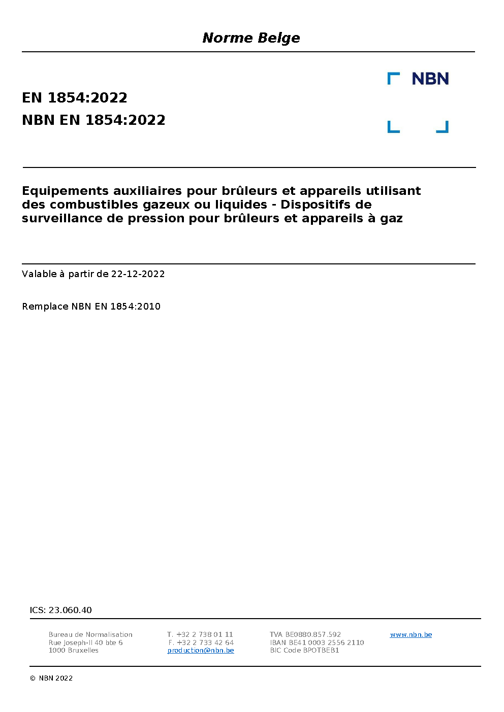| Publisher | Bureau de Normalisation Belge (NBN) |