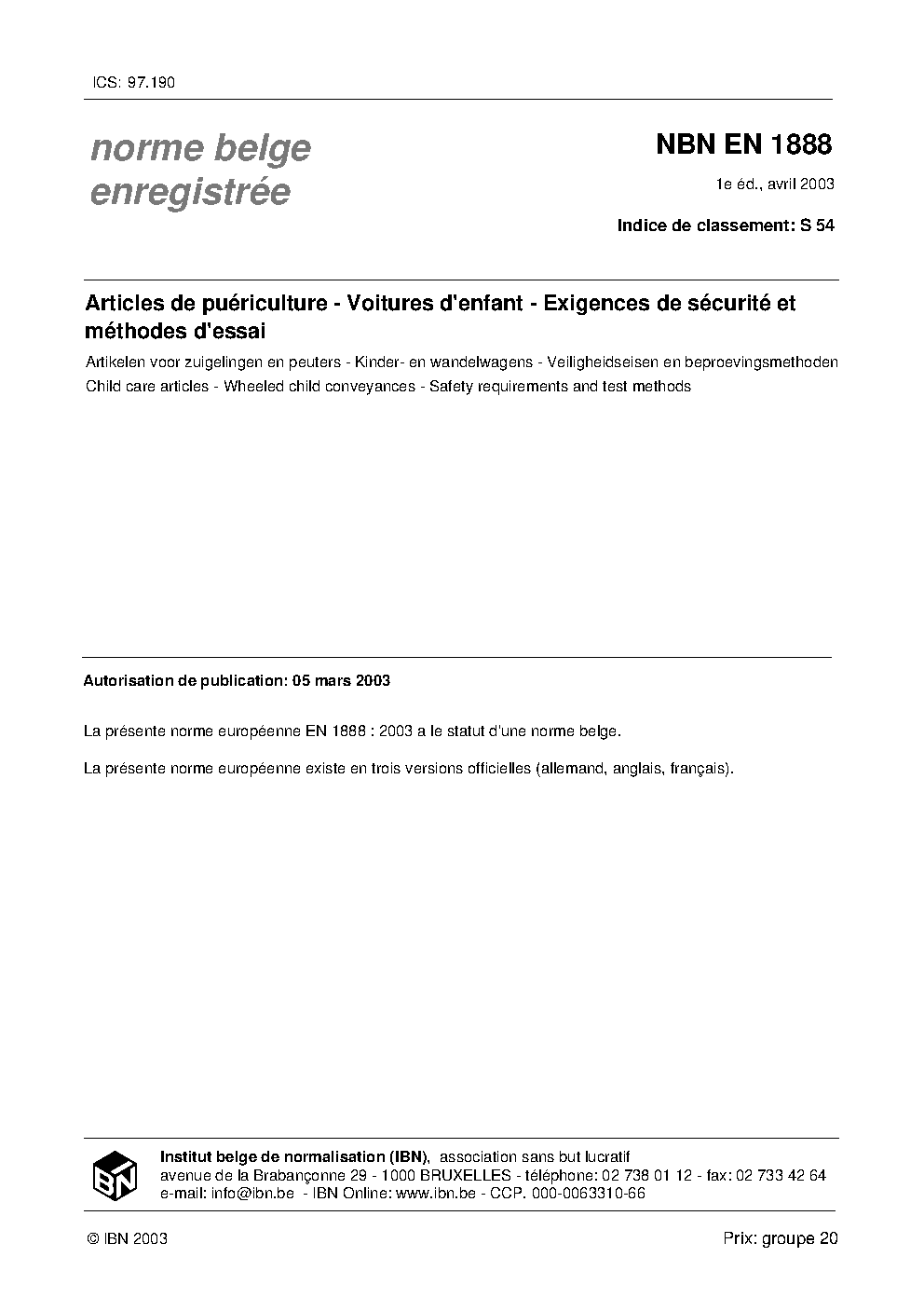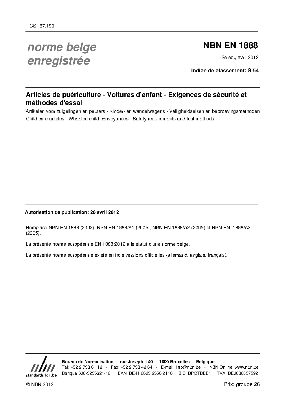 | Publisher | Bureau de Normalisation Belge (NBN) |