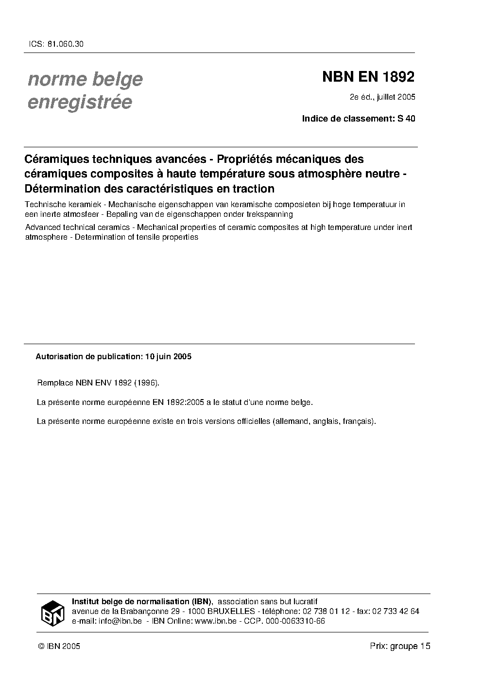 | Publisher | Bureau de Normalisation Belge (NBN) |