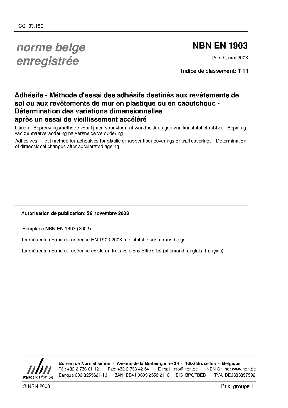 | Publisher | Bureau de Normalisation Belge (NBN) |