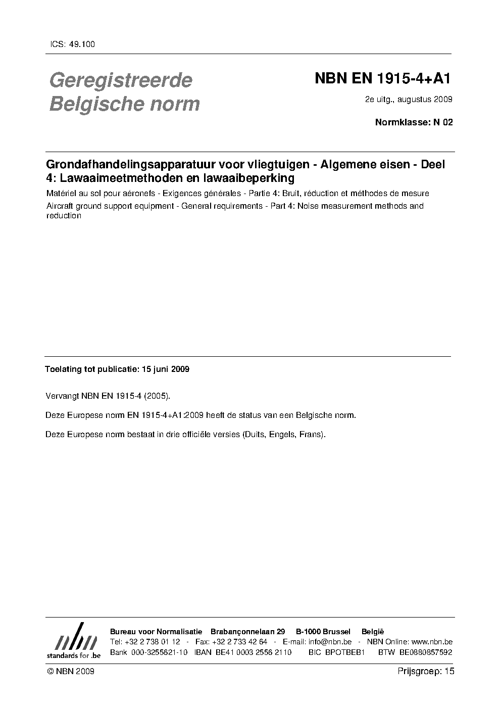 | Publisher | Bureau de Normalisation Belge (NBN) |