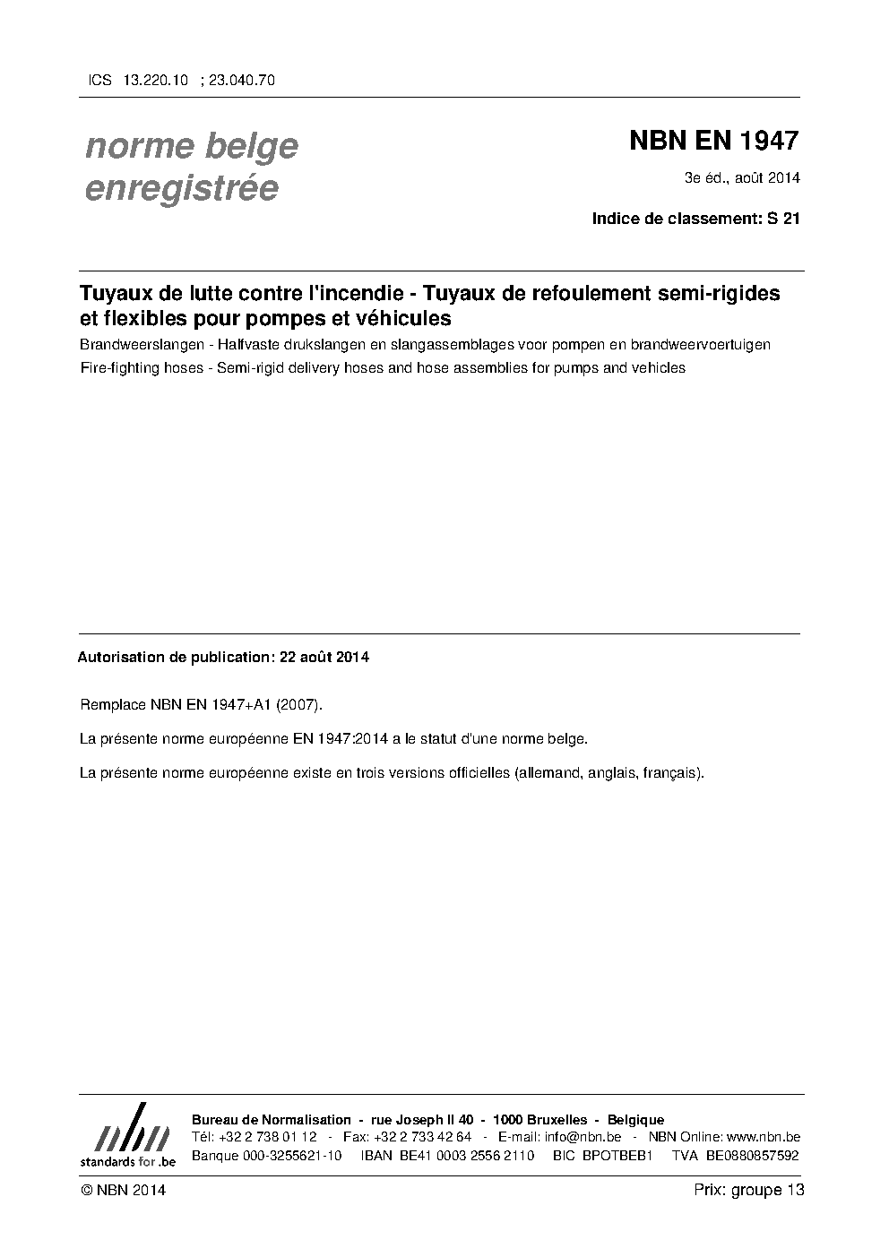| Publisher | Bureau de Normalisation Belge (NBN) |