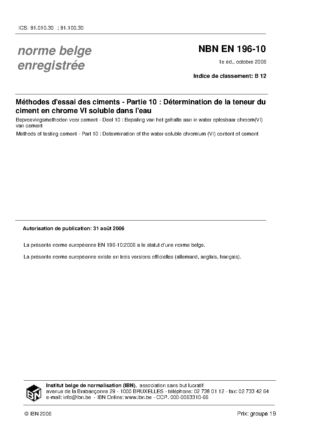 | Publisher | Bureau de Normalisation Belge (NBN) |