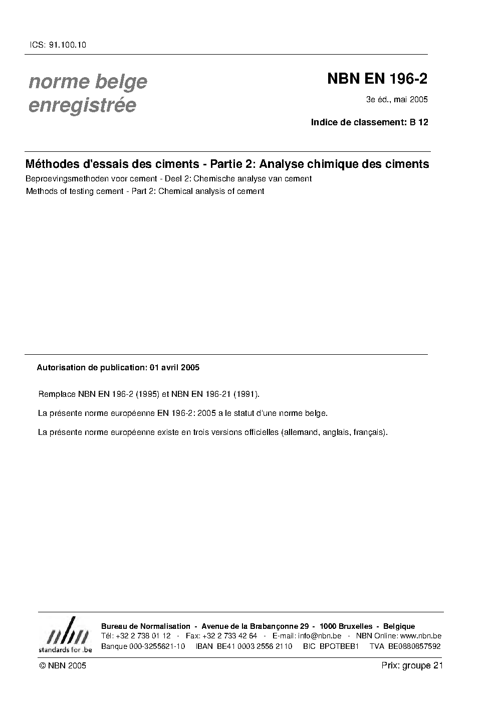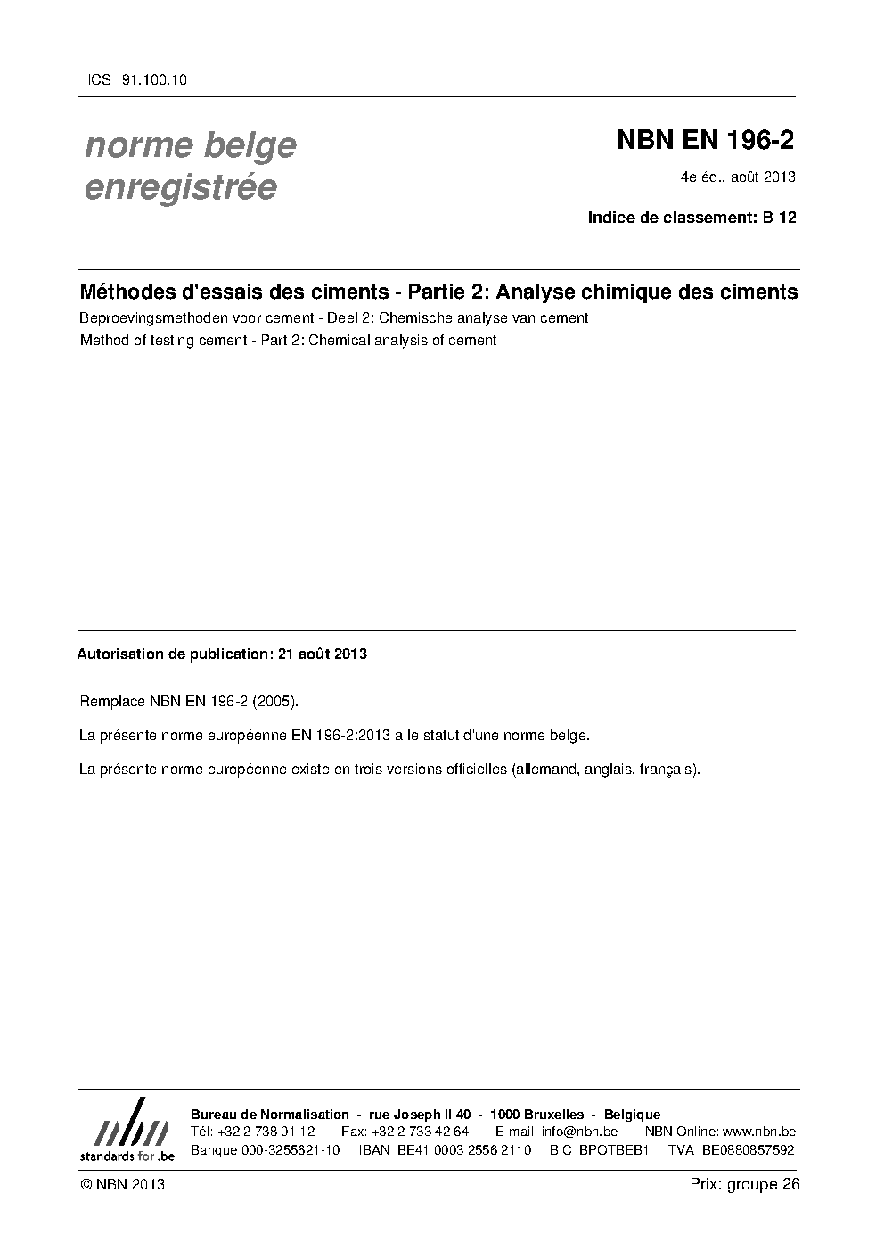 | Publisher | Bureau de Normalisation Belge (NBN) |