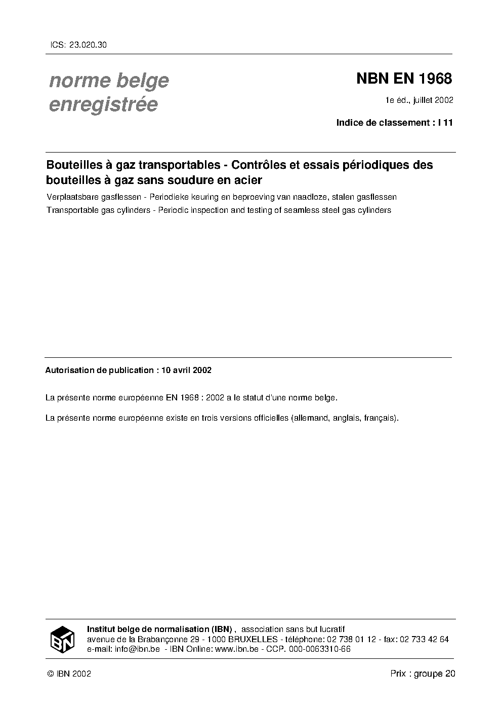 | Publisher | Bureau de Normalisation Belge (NBN) |