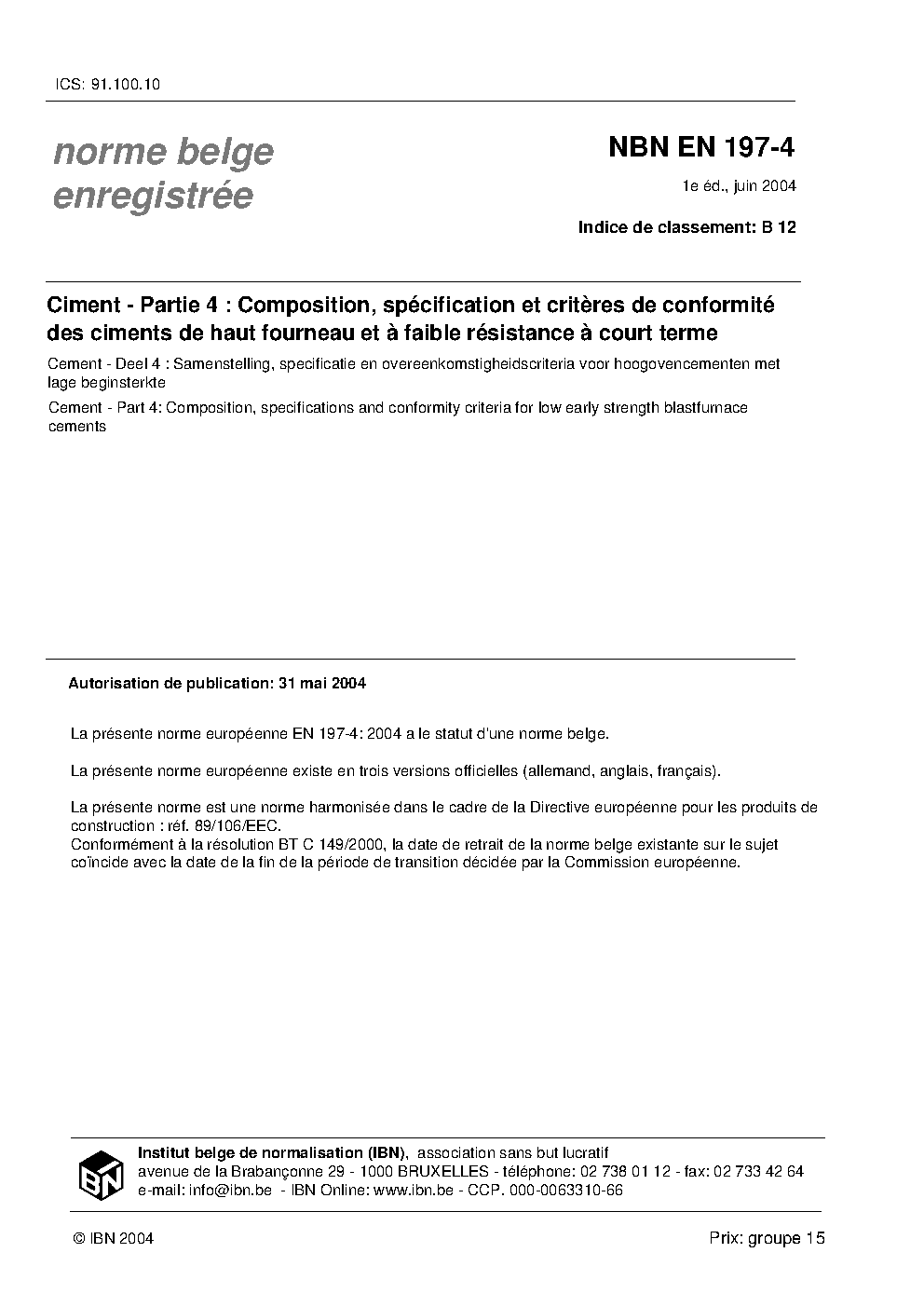 NBN EN 197-4:2004