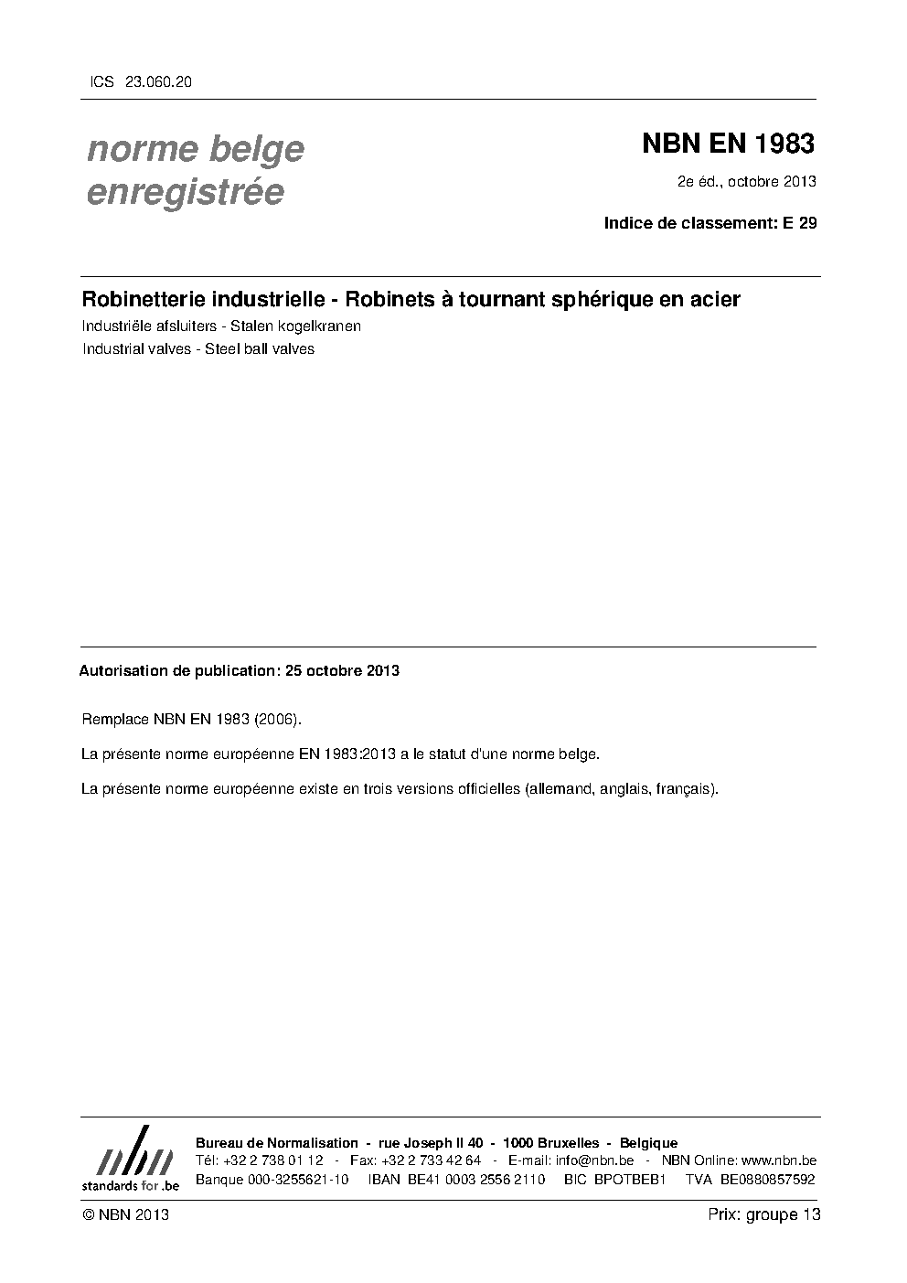 | Publisher | Bureau de Normalisation Belge (NBN) |