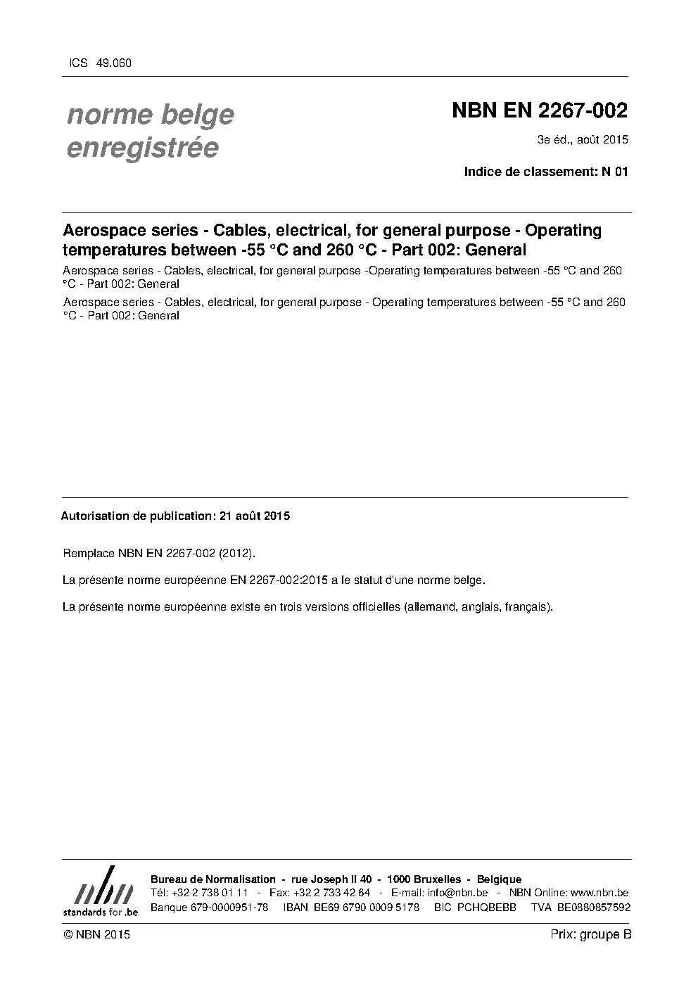 | Publisher | Bureau de Normalisation Belge (NBN) |