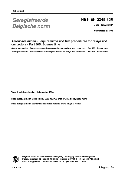 Aerospace series - Requirements and test procedures for relays and contactors - Part 305: Bounce time