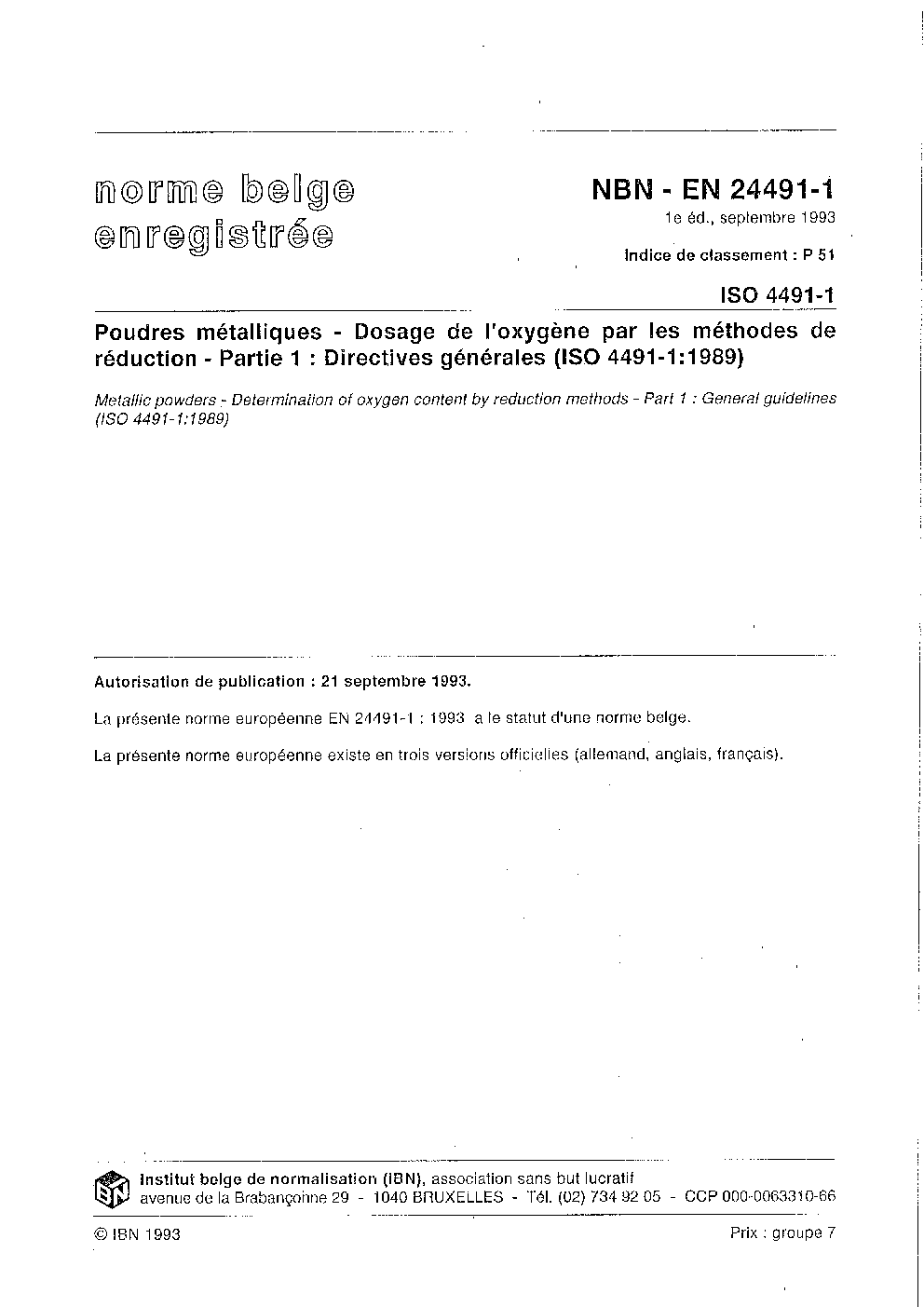 | Publisher | Bureau de Normalisation Belge (NBN) |