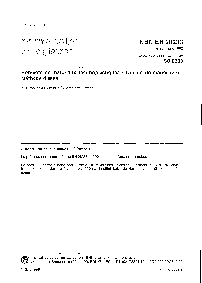 Thermoplastics valves - Torque - Test method (ISO 8233:1988)